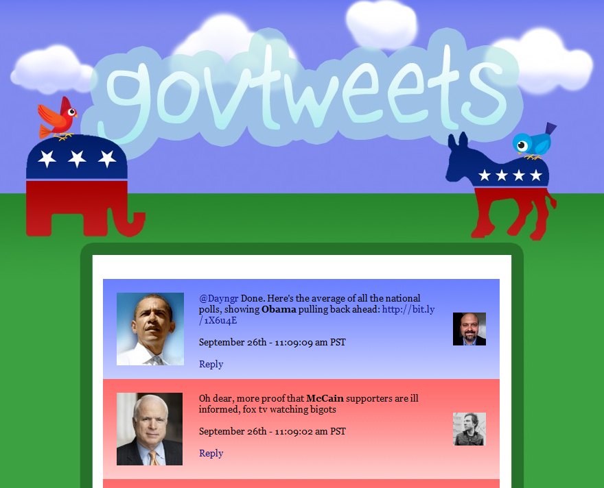 Both govtweets.com and govtweets.ca are humming along nicely as the websites track the real-time online conversation via twitter on the POTUS race and the…